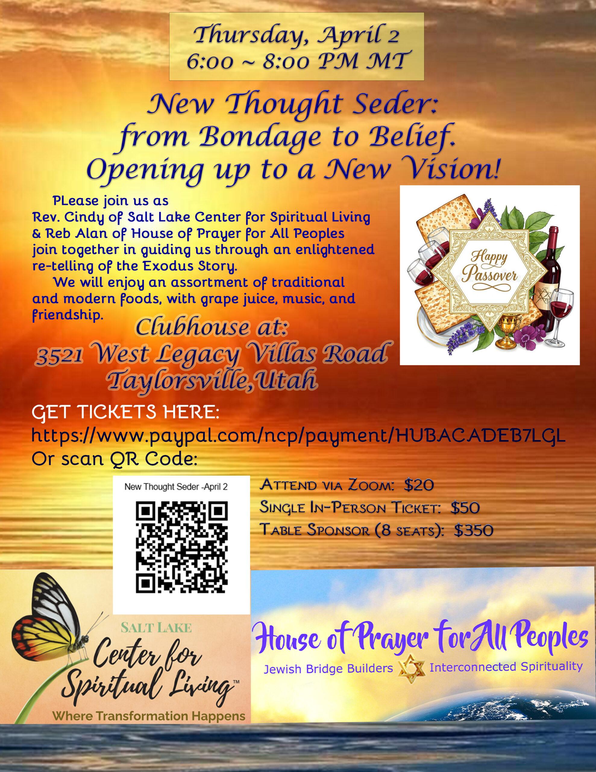New Thought Passover Seder! Seating is limited, and this is a ticketed event.